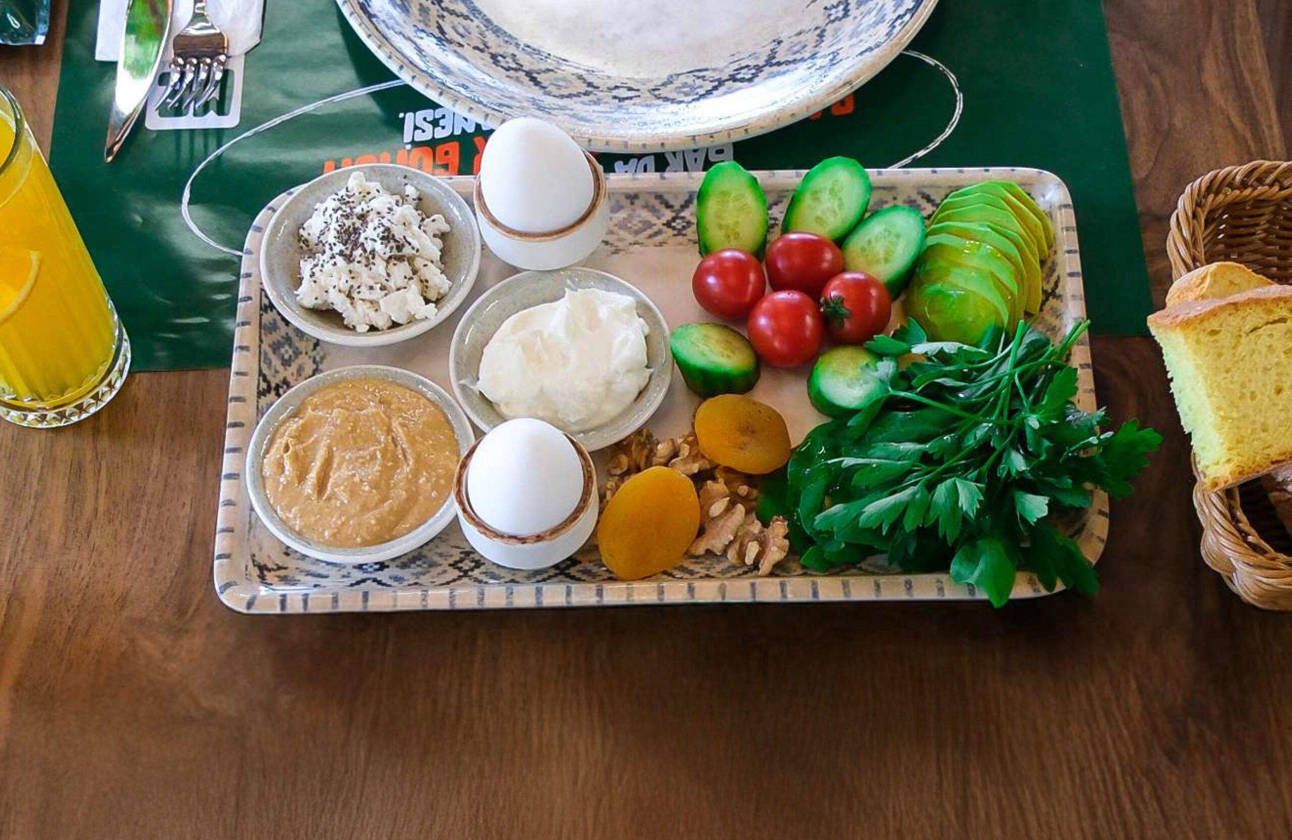 VİTAMİN: Yeşillik (Maydanoz, Roka), 1/2 Avokado, Kokteyl Domates, Salatalık, Kuru Kayısı